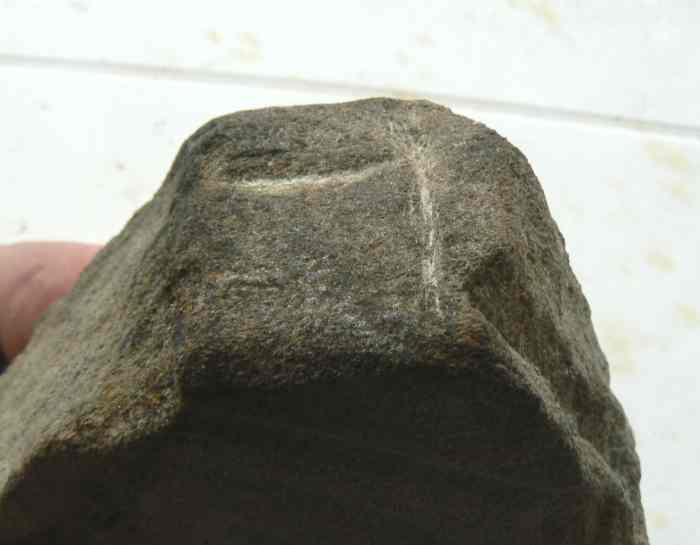 A côté de la cuvette à polir les faces des haches, il y avait des rainures, comme sur ton morceau de polissoir, et qui servaient, semble-t-il, à chanfreiner les côtés des haches.