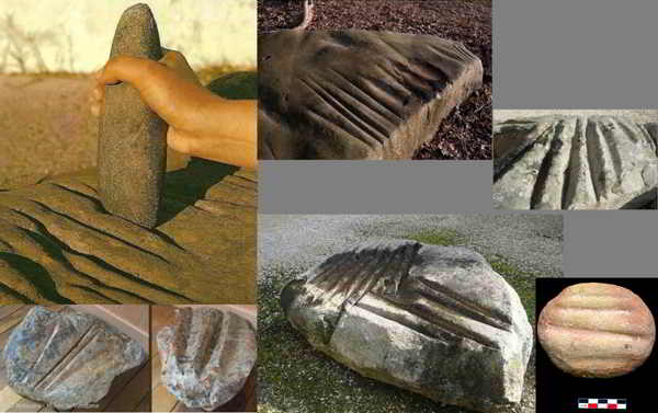 En effet , dans les régions riches en grès , on peu trouver de telles 'encoches' sur l'encadrement en pierre des anciennes fermes , il s'agit bien alors de rainures d'affutage d'outils métaliques qui n'ont rien de néolithique .