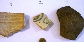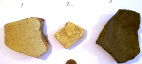 Le 2, peut-être un fragment d'assiette ou de récipient, le 3 à l'air plus intéressant avec son décor en chevrons, peut-être médiéval ?