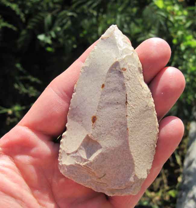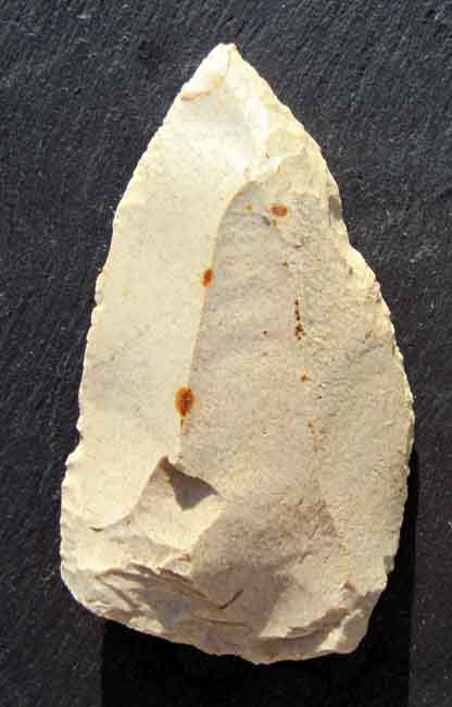 Le forum est calme, vacances pour certains chanceux ... , un cailloux du père igord qui va sans doute faire plaisir à Brannos, pointe levalois retouchée, 9,2 cm une jolie balle !!!! suis ravis !!!!