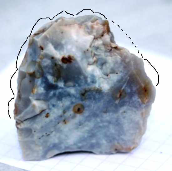 C'est bien un grattoir, Lupus, peut-être cassé (pointillés). On pourrait presque le qualifier de circulaire, certainement ce qu'on appelle un outil opportuniste, de plus si le matériau est rare raison de plus pour exploité le moindre éclat.