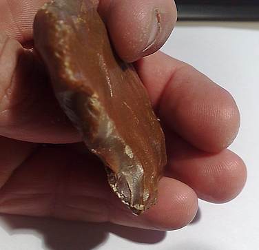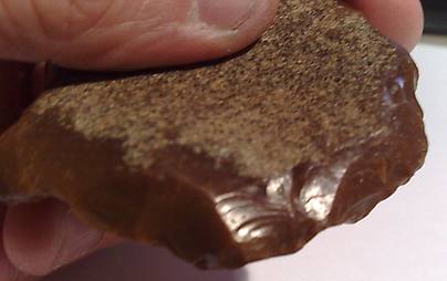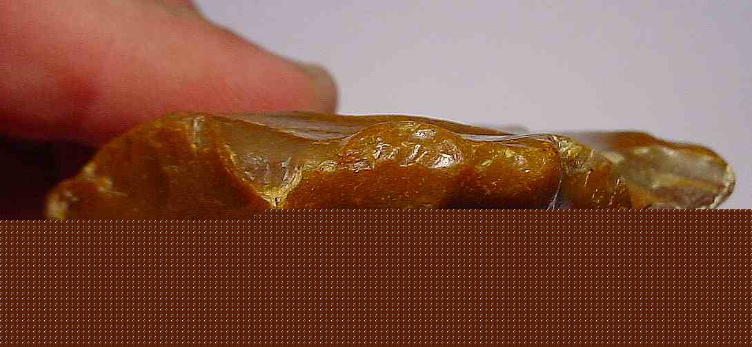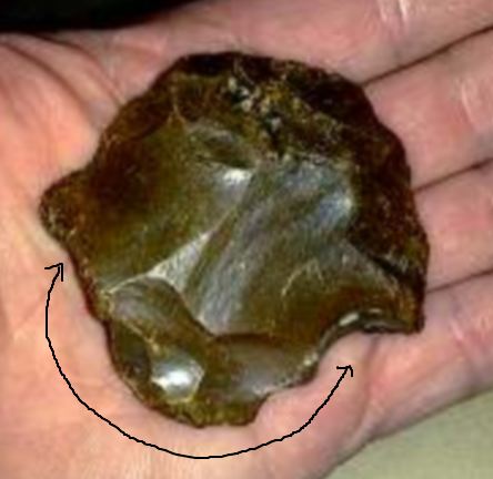 Celles-ci (les retouches ou enlevement) ne donnent pas naissance à un tranchant (photo en R21) et c'est un peu pour cela que je favorise l'idée du nucléus au lieu de l'outil.