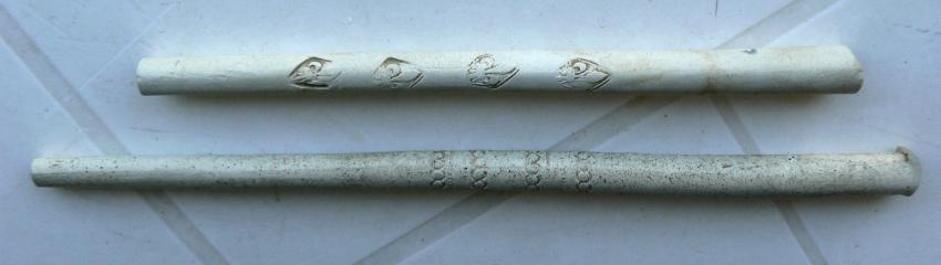 J'en ai aussi plusieurs exemplaire du 17ème et 18ème siècle. les tubes à pipe décoré de fleurs de lisse sont les plus courants. Néanmoins, ce n'est pas courant à trouver !