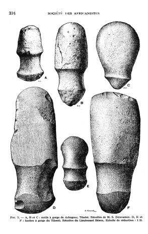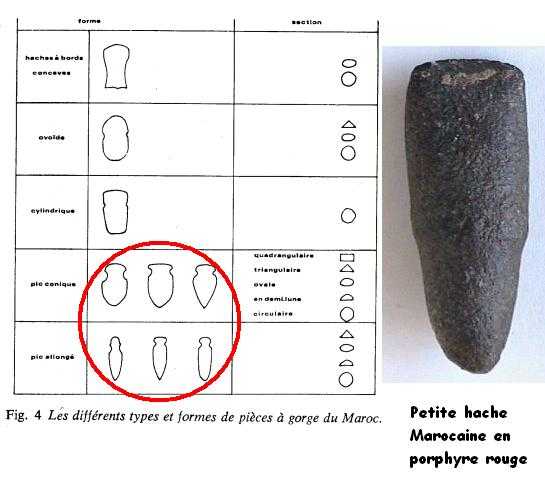 J'ai fait un petit montage montrant les formes de ces outils tel que décrites dans le document cité et accolé une photo montrant une hache marocaine dont la matière semble proche de l'outil présenté.
