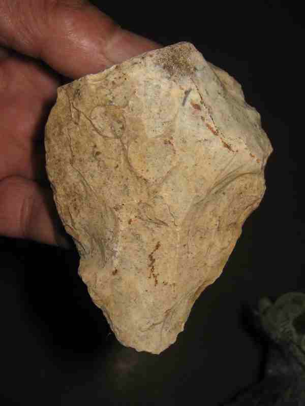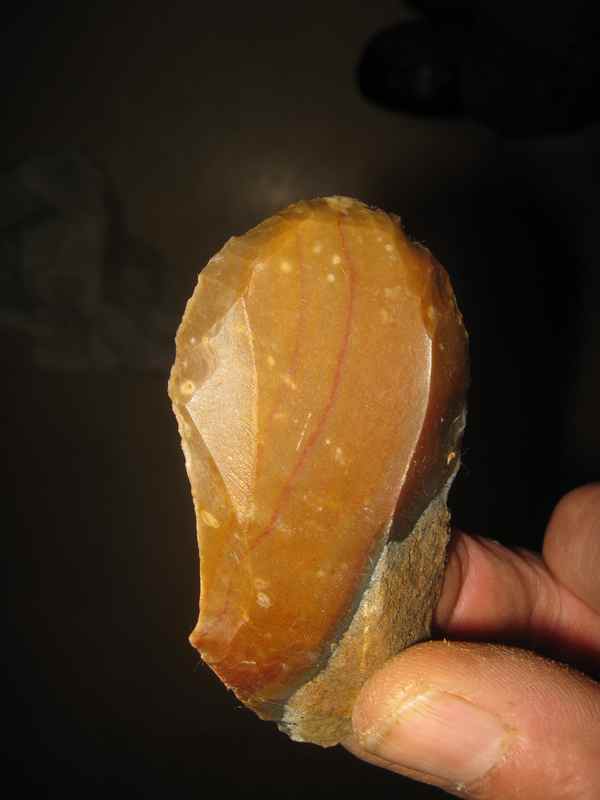 Pointe levallois a base retouchée,probablement pour l'emmanchement