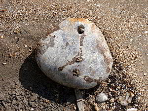 Voilà une pierre percée d'un trou très fin, environ 3mm...