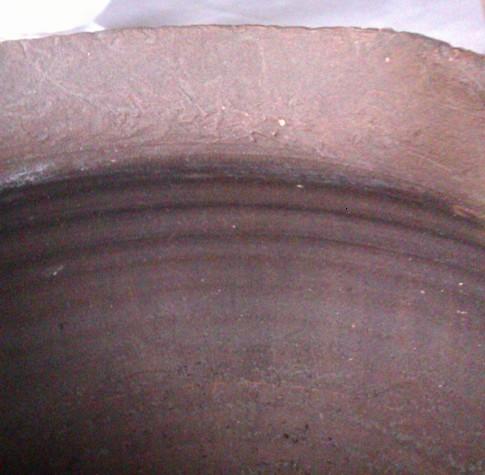 Ces poteries sont tournées et signées ; elles possèdent toutes la même signatures, que j'interprète en 'C Phi 1'. Au vu de cela ,je ne pense pas qu'elles soient très anciennes. L'état de surface est irrégulier, mais ces irrégularités semblent volontaires. Il n'y a pas de glaçures ni à l'intérieur, ni à l'extérieur.