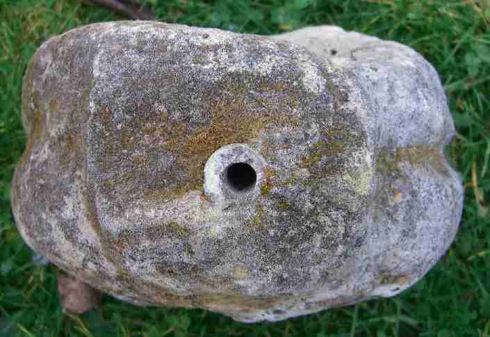 c'est un objet ,effectivement étrange ,il a l'air d'avoir souffert du temps presque naturel ,mais le trou sur le dessus semble bien fait par l'homme .. ...??? Peut être que d'autres avis pourront élucider ce mystère ..
