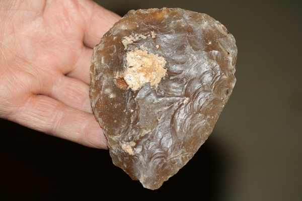 Rapiette j'y suis retourné samedi .....et deux bifaces ,une pointe de flÚche et mon pot une hache de 15 cm .