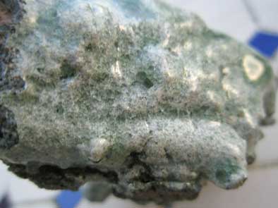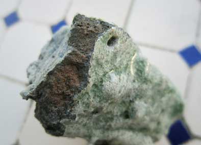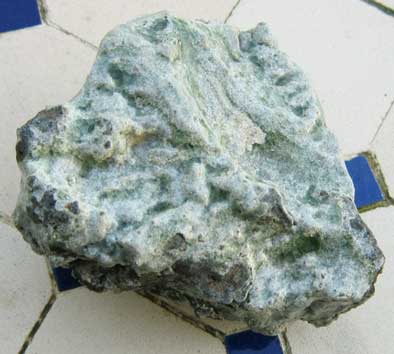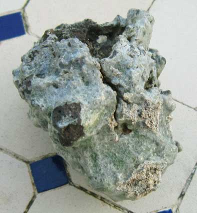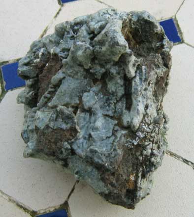 Voici quelques photo d'une 'pierre' émaillée. J'en ai trouvé plusieurs de plus ou moins grandes dimensions sur un secteur d'environ 30 m2. On dirait des scories très légères avec du verre dessus.