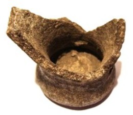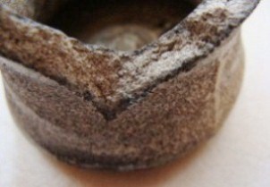 La céramique courante : Terre cuite non glaçurée doit être nettoyée à l'eau clair, tout simplement. On peut ici utiliser un brosse à poils doux. Pour la terre cuite glaçurée au plomb (jusqu'à la fin du 19ème siècle environ), on peut utiliser une brosse à poils plus durs, mais en faisant d'abord attention à l'état de la glaçure. La glaçure au plomb à parfois tendance à s'éffriter. Dans ce cas, il faut y aller molo.