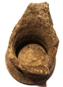 c'est le fond d'une cruche (récipient), qui vu sa forme, je suppose être plutôt post médiévale ( cette un suposition). Evidemment ce tesson me semble encore très crado et on y voit rien. Le fragment est aussi assez petit et on on ne voit pas les détails comme la teinte d'origine de la matière et la finition, avec ou sans glaçure.