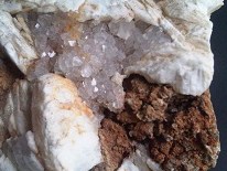 [1797] je suis en parfait accord avec neodom , c'est de la barite cretelèe et de la calcite.le reste de couleur foncè est certainement du minerai de fer . c'est assez courant en aveyron. amitiès a tous
