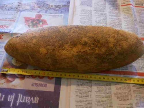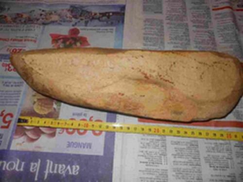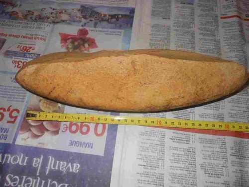 Bonjour à tous ! et que le dieu des trouvailles soit avec vous ! comme suite à opération, je ne peux pas sortir prospecter, je trie mes cailloux entassés dans des cagettes, cet objet dont la longueur est de 32 cm, ramassé encore dans une vigne, et oui j'aime bien les vignes ! pas que pour les raisins, mais pour ceux que l'on y trouve !