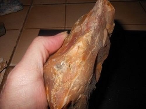 je suis dac avec Iron, la matière est belle, teintée de cuivre et d'ocre et est certainement en calcédoine, bon c'est sur c'est pas un biface, en R2 la chose est épaisse au niveau de la tranche, comme le dit Michel ça fait façon chopper, aparté pour Michel c'est le même nom pour tout le monde,le chopper est souvent une base de galet et pété que sur un côté, le chopping-tool est aussi pété d'un côté mais il l'ai aussi de l'autre, voir des retouches tout ça du paléo inférieur. Un pic pour les tubercules mais bon