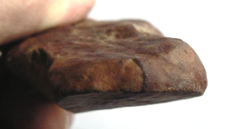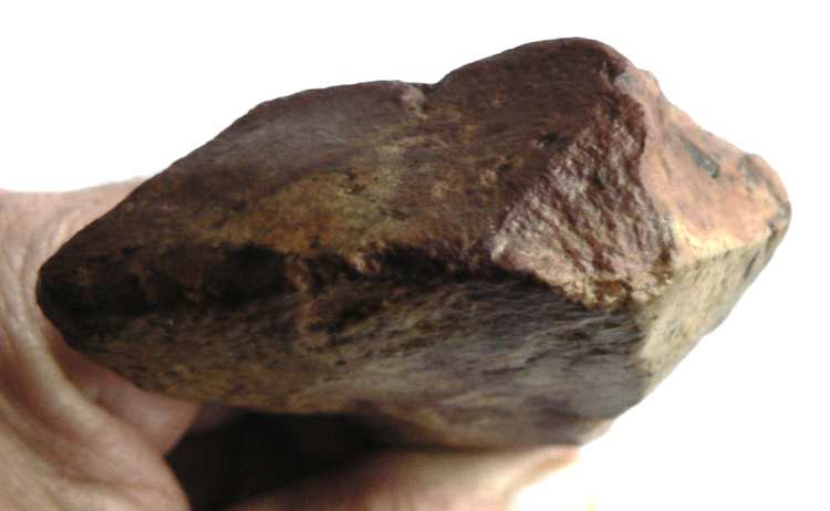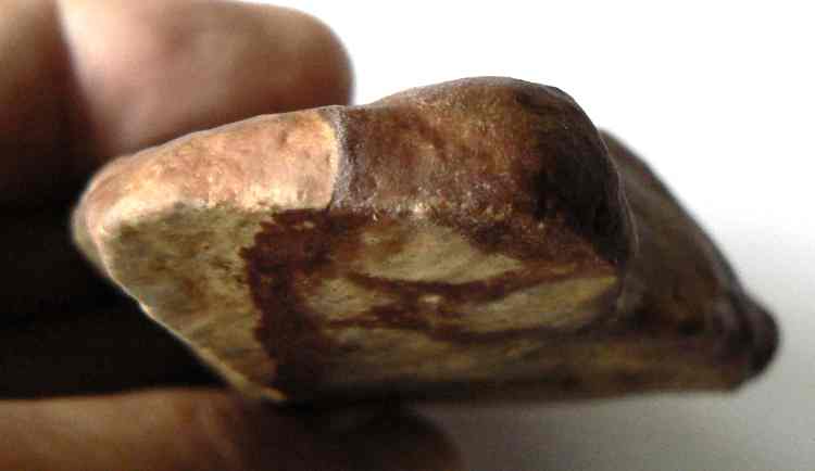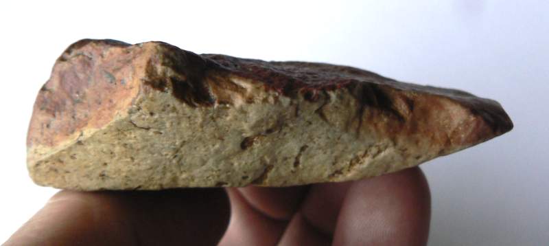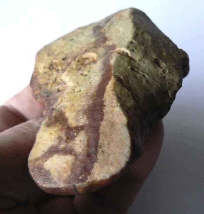 Je vous présente cette pièce qui a pu être un grattoir à museau à l'origine mais le dit museau est plus poli par l'usage qu'émoussé. Il est plus usé d'un côté comme si le mouvement était pratiqué en commençant toujours du même côté. J'ai pensé à un moment à une sorte de lissoir mais vu l'époque et le peu de surface, j'ai abandonné cette idée et cherché une autre utilisation. Le hasard de mes lectures m'a orienté vers les briquets, je mets à la fin, une photo d'un kit complet trouvé dans une grotte, chose assez rare aux dires des découvreurs, car l'amadou ainsi que la marcassite ou hématite, ces dernières disparaissant par la rouille.Mais malgré tout la pierre ayant servit à cela devait en porter les stigmates.Merci pour vos avis.