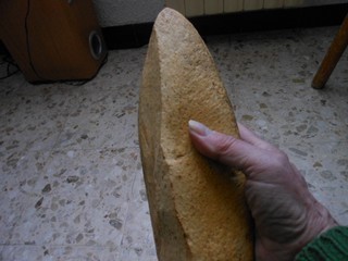 Pour l'instant, je reste sur l'idée du lissoir, qui n'est pas forcément préhistorique. Apparemment t'es tombé sur un nid. Dommage que tu n'est pas fait une photo de la R1 du précédent post qui représente la semelle, le cÎté actif de l'objet.On pourrait voir si c'est un lissoir ou une énorme (32 cms) meule active ? Si tu peux en faire une de l'objet entier ainsi qu'une autre plus rapproché pour pouvoir voir l'aspect de la semelle, ce serait bien.
