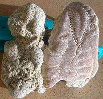 Voici un fossile trouvé sur une plage espagnole. C'est une empreinte sur une roche, ça ressemble à une sorte de carapace mais sans aucune certitude.