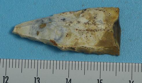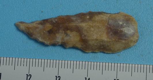 Pour le burin, il y a un petit 'coup du burin' le long de la pointe sur le bord le plus haut sur la photo. Même s'il est très certainement intentionnel il fait à peine 1 mm de large. Comme c'est une période avec des pointes à dos semblables (et vu la taille et la position de la brisure ainsi que les retouches sur le dos vers le bas sur la photo), je resterais bien sur une pointe à dos.