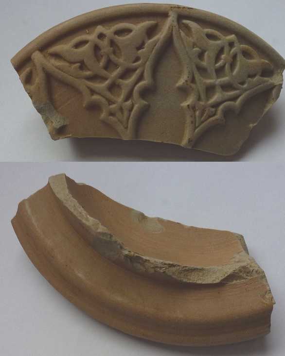 Le motif évoque l'Art nouveau ou Déco de cet moitié de siècle et le tesson en pâte banche ne parait pas très ancien.