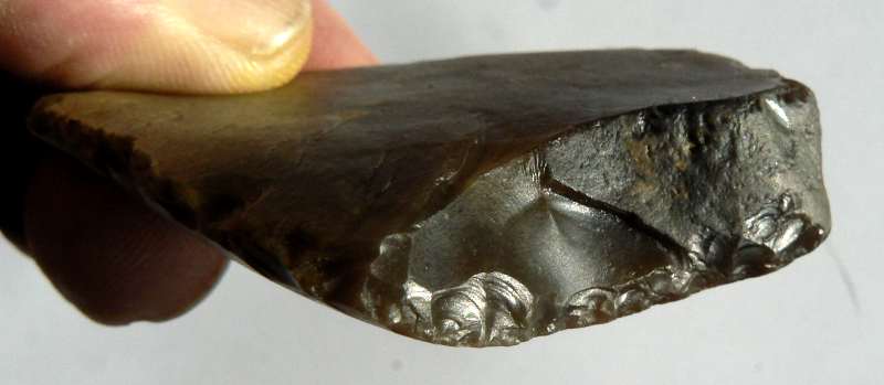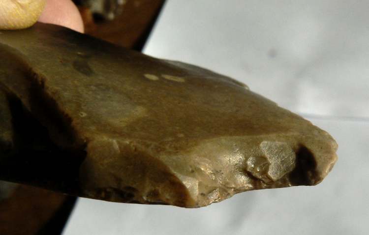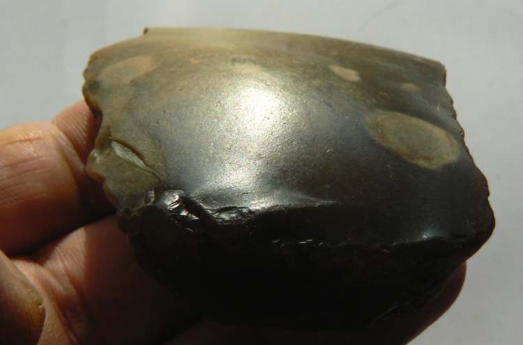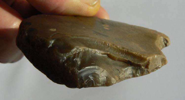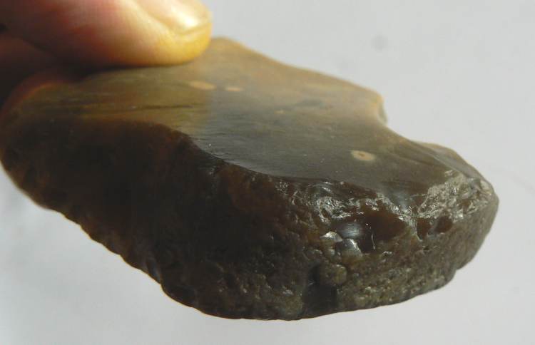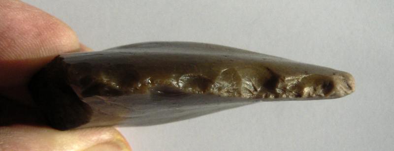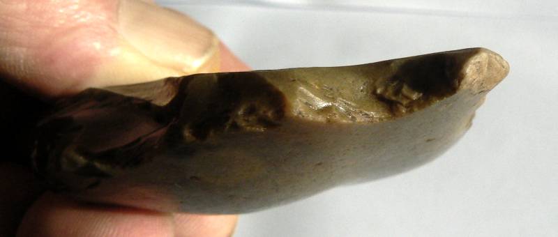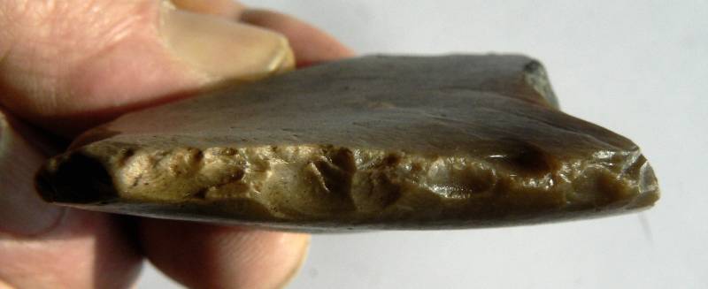 Trouvé à des mois d'intervalles du précédent. Mais ils ont un air de ressemblance dans leur aspect, a peine émoussé et leur façon d'être travaillé. J'y vois un racloir avec coche et un super bulbe Merci pour vos avis.