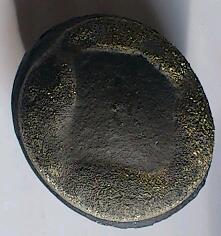 Elle est non ferreuse, pas d'aimantation, et sur une face, on peut observer des cristaux couleur 'or' et de l'autre, un aspect de boulet de charbon très très dur....