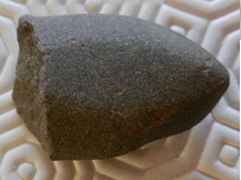 Je me rappelle de ces pierres logées dans une corne creuse remplie d'eau et portées à la ceinture. Mais je les revoie plus en forme de pierre à aiguiser classiques: très anguleuses, rectangulaires , finies en pointe.