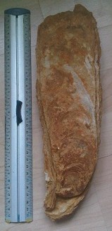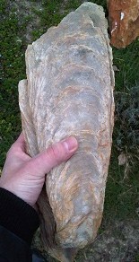 Je ne pourrait pas te dire MARCO, si elle est fossilisée, mais elle me fait penser aux huitres dites 'pied de cheval ' qui pousse en pleine mer et fortement iodée, j'en ai ramassé qui mesuraient 20 cms.