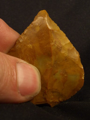 c'est dommage pour les photos l'identification n'est pas facile ,on voit bien le bulbe de percussion ,la forme ressemble a un éclat a pointe ....mais pas facile sans plus de détails ...
