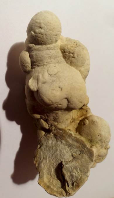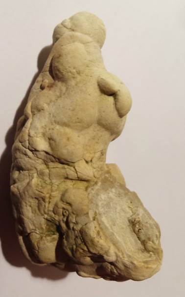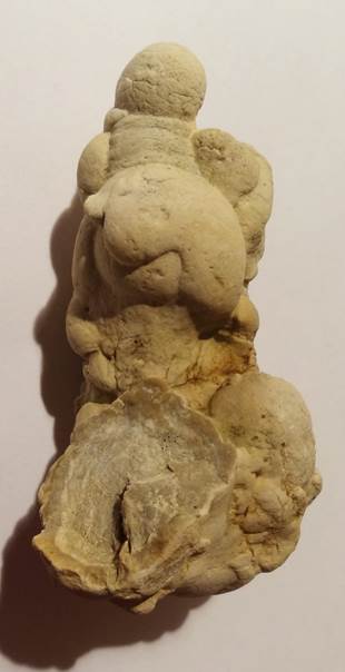 Après nettoyage (et surtout avec une imagination très fertile ), j'ai fini par y voir une silhouette avec une tête (œil, nez, bouche charnue), une espèce de collier, et un enfant pendu derrière à son cou!!