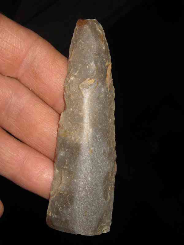 Voici un outil que j'aurai bien aimé trouver entier ...Un poignard , je n'aime pas trop ce terme (couteau a moissonner ) des dernières périodes Néolithiques .Il est taillé sur une lame qui a été polie puis retouchée ... XXXXXXXXXXXXXXXXXXXX