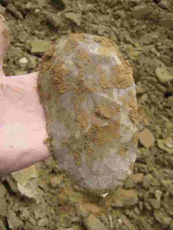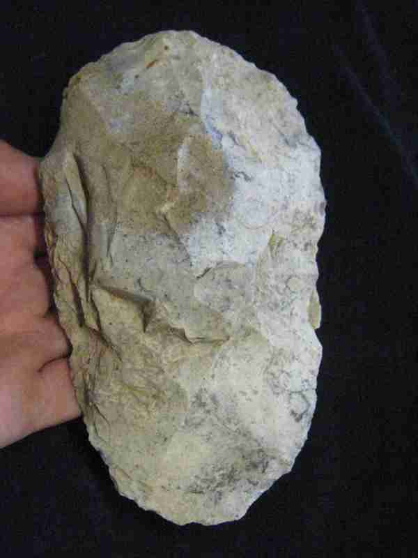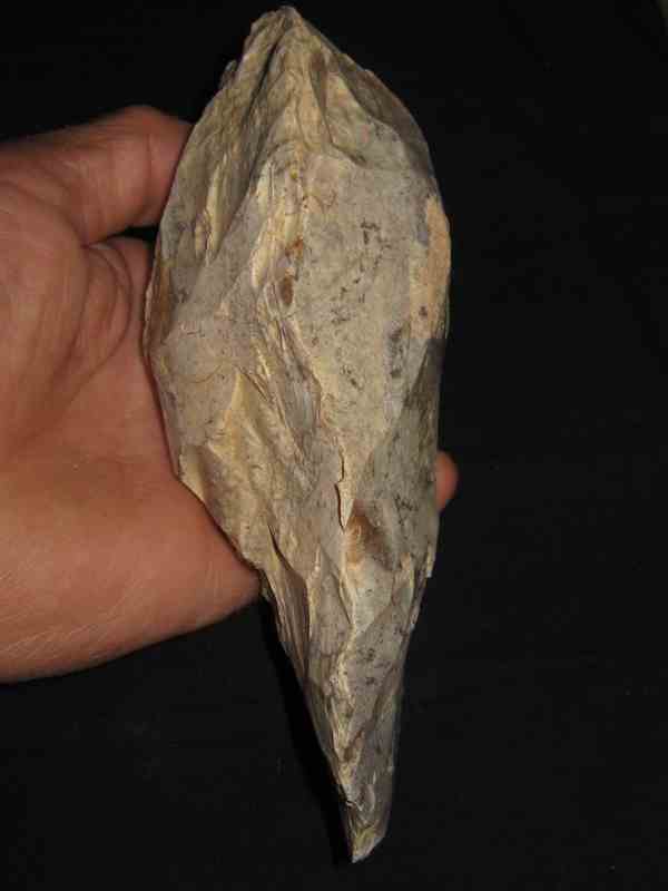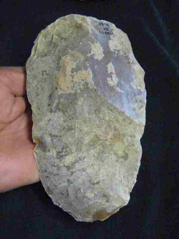 Voici une découverte que je vous fait partager,....un biface d' époque Acheuléene de belle taille et miraculeusement épargné des outils mécaniques...Il finira comme les autres de la collection dans l'inventaire du musée national .............mais restera en ma posséssion ...