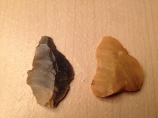 Je vous soumet ces deux silex qui m'interpellent tant pour leur forme qui évoque une ébauche de flèche, que par leur présence dans une petite vallée du Lot, endroit où on ne trouve pas de silex.