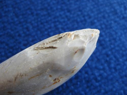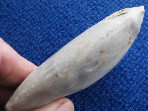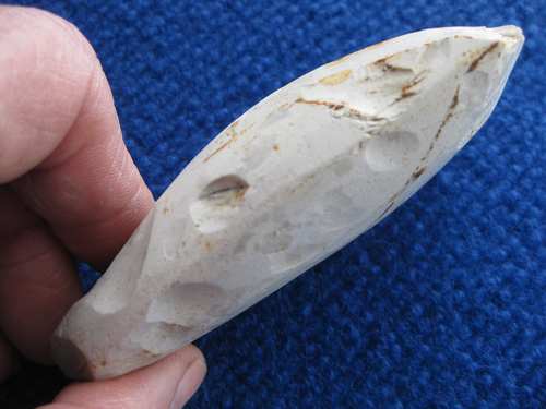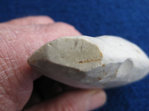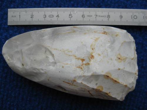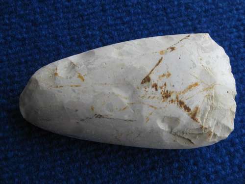 Je vous présente aujourd'hui la plus belle: une hache polie puis réaménagée et qui n'a apparemment subi aucun choc d'engins agricoles. La patine est intacte sur toute la surface.