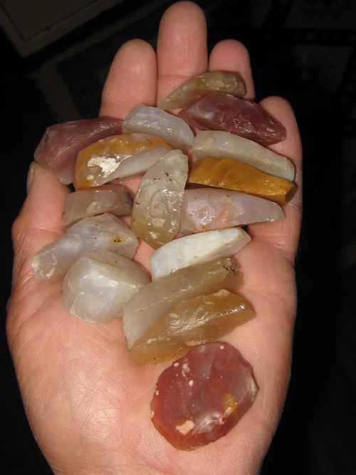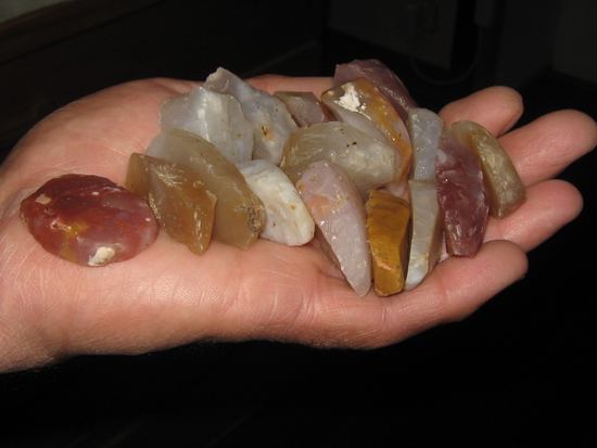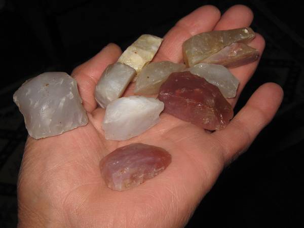 Biface ,j'ai déjà trouvé des bifaces en calcédoine ,mais pas toujours avec de jolies couleurs car la calcédoine se patine et devient plus opaque ...25 pour plus d'un millier ce n'est pas beaucoup.....