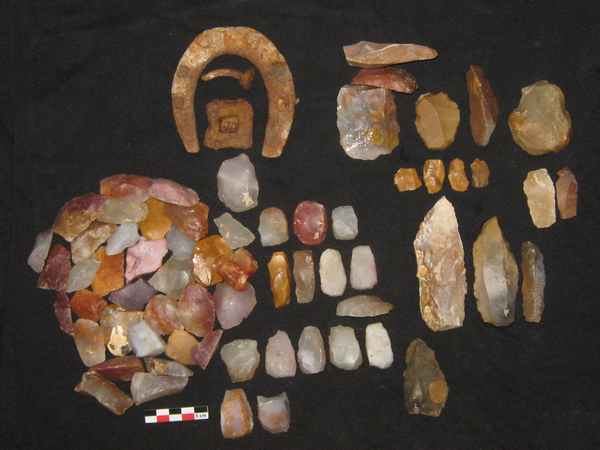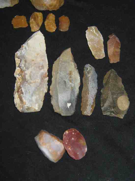 Une sortie et découvertes de pierres a fusils (complément d'un poste d'il y a plusieurs mois n° ? ) par une chaleur écrasante . des ébauches , des pierres a fusils finies en calcédoine de couleurs , des outils de diverses périodes ....etc...