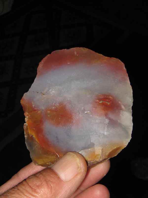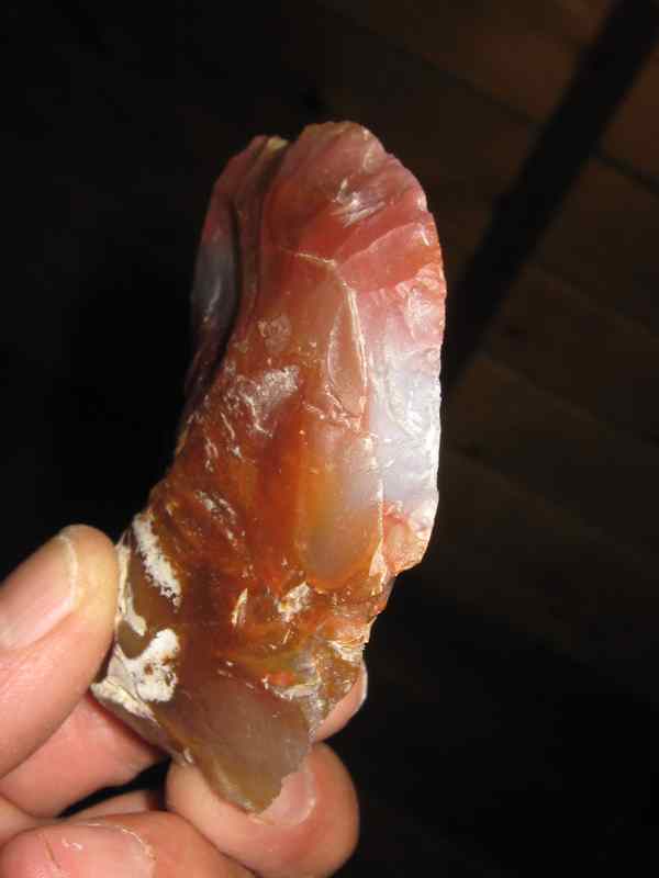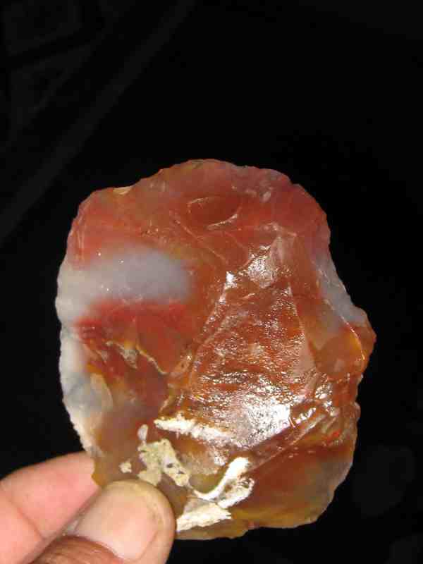 Pour animer un peu le forum ,voici un grattoir probablement Néo en calcédoine colorée ...8 cm x 7cm ....rien d'exceptionnel mais la couleur me plait bien ...