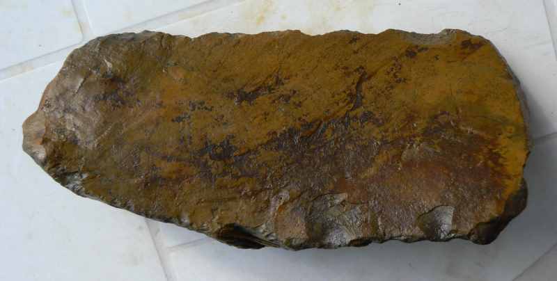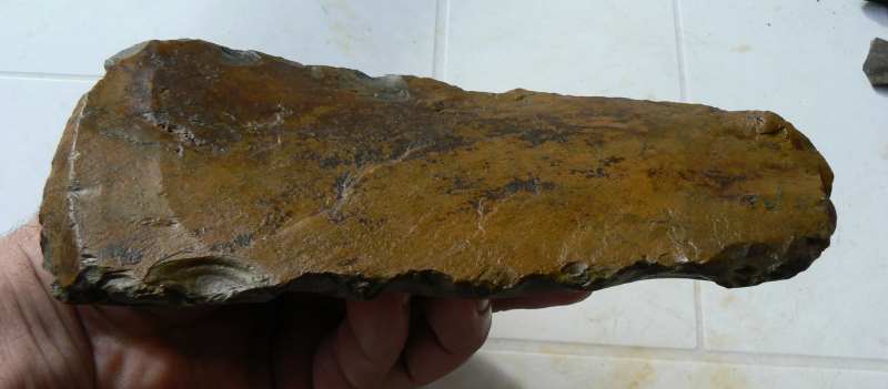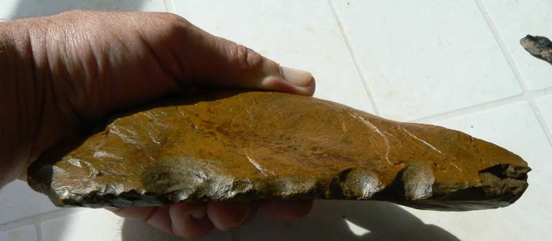 Ce racloir ou peut-être une sorte de denticulé pourrait-il être de cette époque ? Il mesure 20 cms et a la vue de la patine de la lame, celle-ci a du resté un moment dans l'état avant d'être reprise par un autre individu qui lui a fait des enlèvements régulier. C'est la différence de patines qui me fait dire cela. Merci pour vos avis.