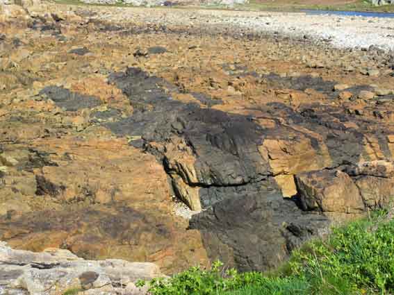 lors de mon dernier séjour en Bretagne un ami m'a montré ce site ou l'on voit des veines de dolérite dans la formation de granit.