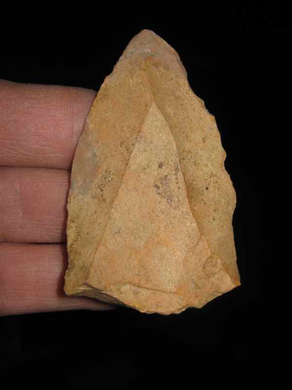 Trouvée au mois de Mai cette pointe Levallois typique avec ses enlèvements bien caractéristiques d'un très bon tailleur. Quatre frappes au percuteur dur sur un nucléus bien préparé, suffises, mais a réussir c'est autre chose ......enfin pour moi ....