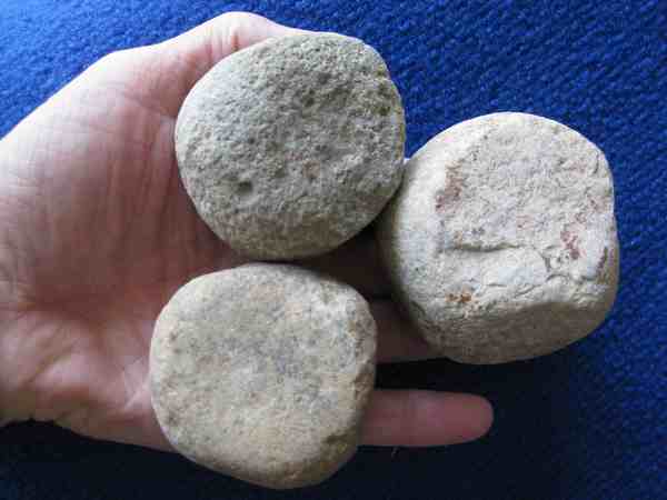 Les dimensions et les formes des molettes semblent être très variables, pas forcément sphériques comme je le pensais, et j'ai même pu noter des 'diamètres' aux environs de 80m/m, ce qui est relativement petit et très proche de mes 'cailloux'