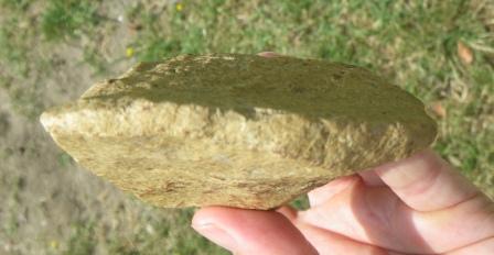 -le matériaux (moins coupant que du silex et globalement nombreuses roches de même nature dans le champ).