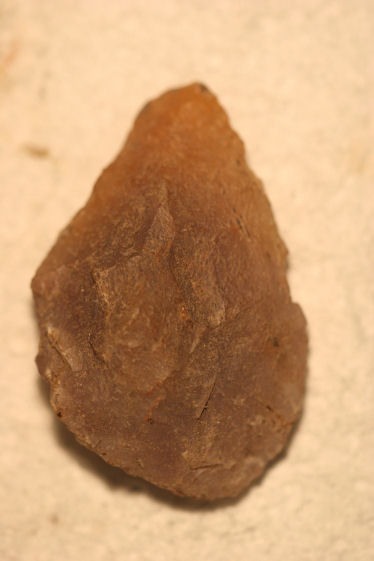 Pour moi il se pourrait (au vu des dimensions) que cela soit un petit racloir du paléolithique moyen.