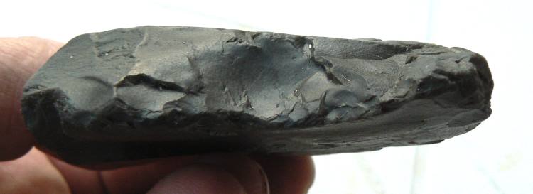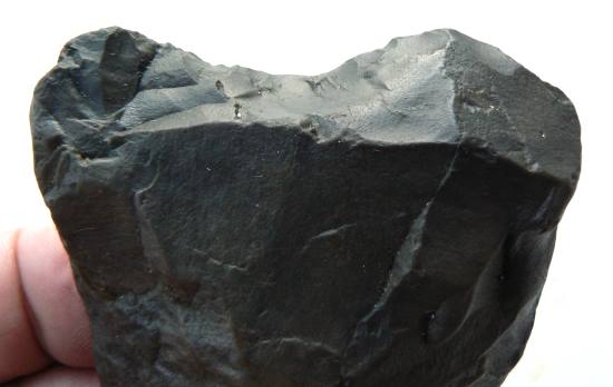 Artefact frustre sur éclat assez érodé .