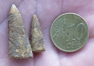 j'ai trouvé ces 2 petites choses 'pointues' dans une champs du 14 .