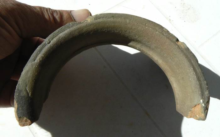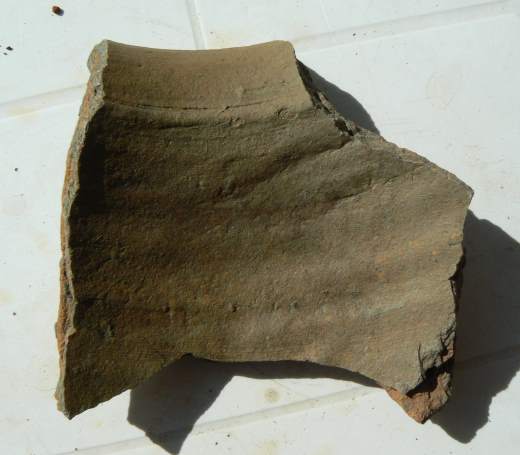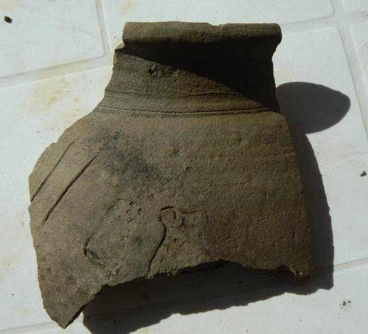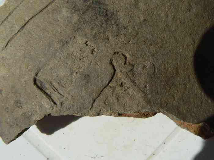 J'ai aussi trouvé cette autre tesson à environ un mètre du précédent. La technique de cuisson n'est pas la même, histoire de four fermé ou ouvert je ne me souviens plus exactement.