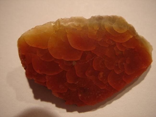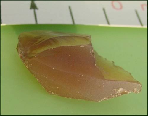 Ci dessous un éclat chauffé trop fort (couleur rouge, plus cupules)