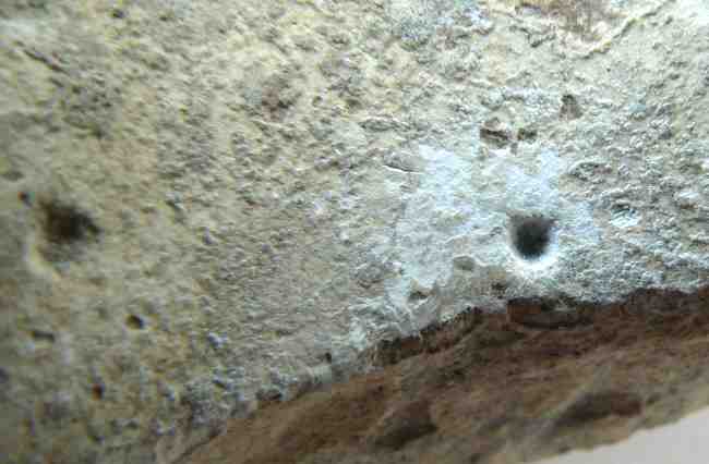 Effectivement la couleur ressemble à celle du béton, il y a aussi ce cailloutage, la cupule dégagée est plus importante que l'autre. Je ne sais pas trop quoi penser. Si c'était du béton, je ne pense pas que j'aurais obtenu ce résultat avec un simple cutter.