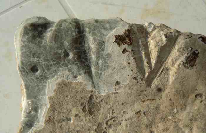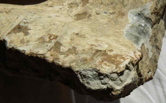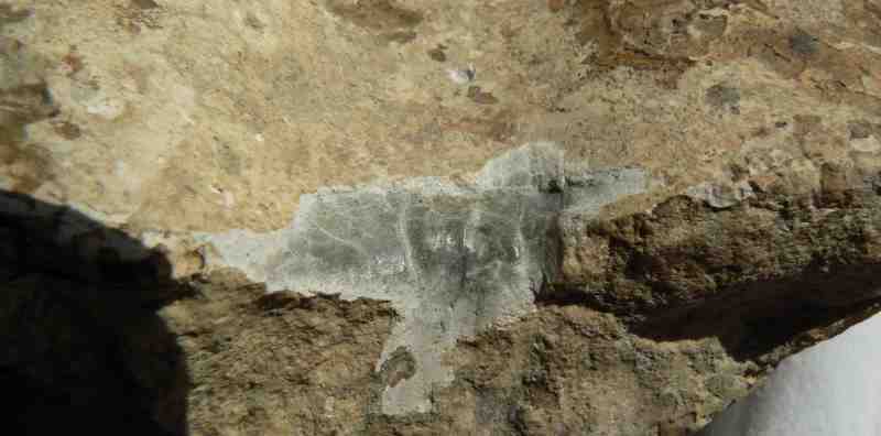 J'ai dégager une entaille. Rien avoir avec l'originale. Personnellement, je n'ai jamais vu un morceau de béton avec une patine comme celle-là . Une fois dégagé on obtient un matériau très dur et lustré, on le voit sur les photos lorsque cela brille, avec le même touché qu'un silex.