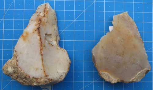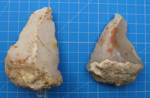 Pour moi ce sont des silex taillés. Par contre comme je ne vois pas de retouches j'opterai plutôt pour des éclats de débitage.
